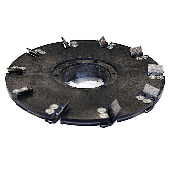 The Diamabrush™ Coating Removal Tool is designed to quickly and effectively remove mastic, carpet or tile adhesive, thin-set, thin mil epoxies and other stubborn coatings from concrete floors. This diverse tool easily mounts to a wide range of floor machines and uses 10 replaceable diamond coated blades to deliver superior grinding performance. It is recommended to be used with water to eliminate dust and flush away debris while working.