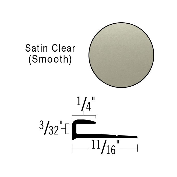 This coving cap with a silver smooth finish has a 3/32" opening for use as a protective edge and trim for covered resilient sheet goods.