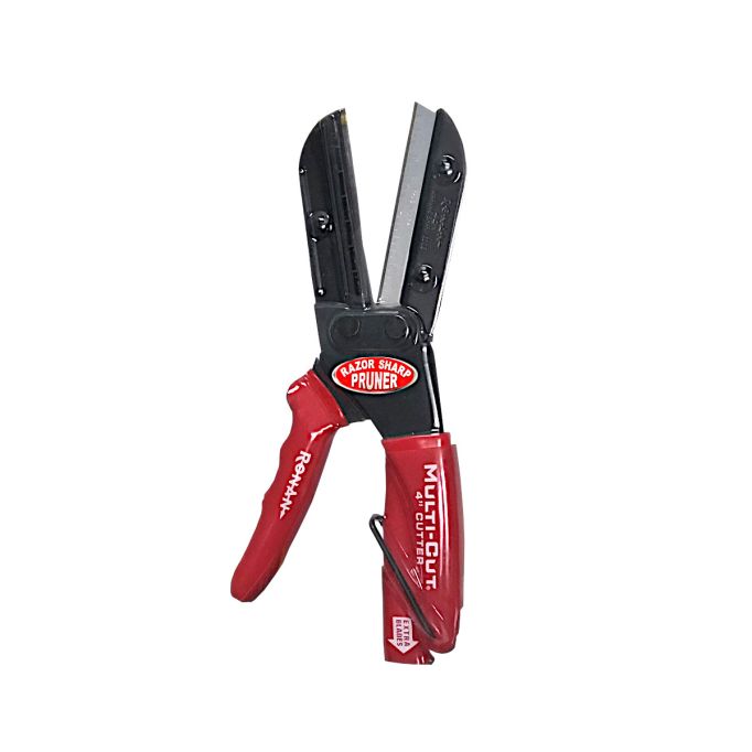 This tool makes clean, straight cuts in vinyl, rubber or plastic. Cutter has comfortable non-slip hand grips and a blade storage tray in the base of the handle. Jaws open to 1-1/2" and maximum length of cut is 3-7/8". The handle latch keeps tool closed for safety. Cutter comes with cutting anvil and two stainless steel blades. Anvil and blades are replaceable.