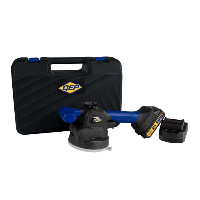 The QEP® GPTP™ Vibrating Suction Cup is the perfect solution for working with large floor and wall tiles. It eliminates trapped air bubbles under tile with a variable trigger control speed vibration, drastically cutting down the time spent on each individual tile. The Vibrating Suction Cup uses a lithium battery.
